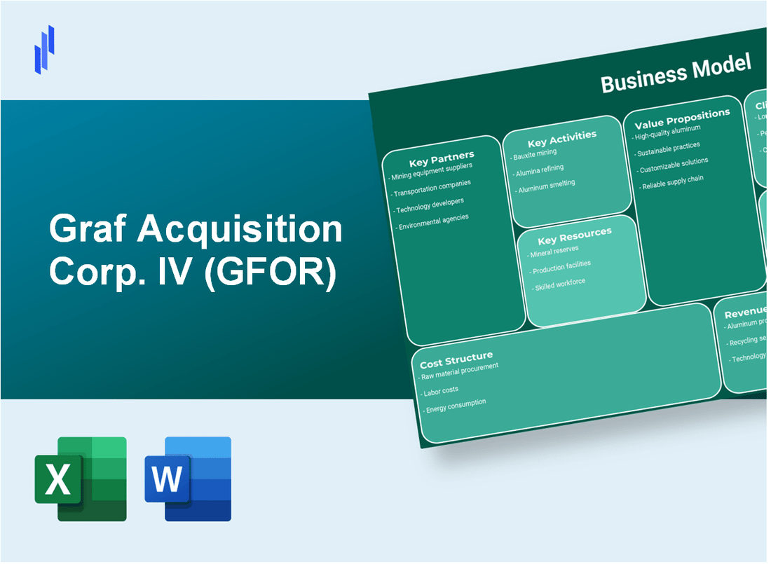 Dans le monde dynamique des fusions et acquisitions, la compréhension du modèle commercial de Graf Acquisition Corp. IV (GFOR) est cruciale. Ce véhicule d'investissement innovant Mélange des partenariats stratégiques et des manœuvres financières sophistiquées pour alimenter la croissance. Avec une concentration approfondie sur identifier des objectifs d'acquisition lucratifs, Le modèle de GFOR met en valeur les activités clés qui sont essentielles à leur approche. Plongez plus profondément pour explorer leur cadre, de propositions de valeur à sources de revenus, et découvrez comment ils taillent un créneau dans le paysage concurrentiel des investissements financiers.