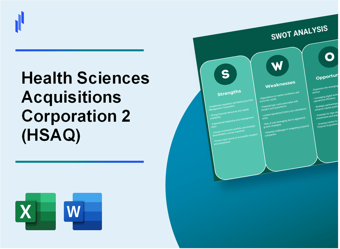 Dans le paysage en constante évolution des acquisitions de soins de santé, la compréhension de la position concurrentielle d'entreprises comme Health Sciences Acquisitions Corporation 2 (HSAQ) est essentielle pour élaborer des stratégies efficaces. En utilisant un Analyse SWOT, nous pouvons dévoiler le forces Ce renforcement de la position de Hsaq, reconnaissez le faiblesse qui peut entraver la croissance, explorer le opportunités mûr pour l'exploitation et identifier menaces se cachant à l'horizon. Approfondissez les subtilités du cadre stratégique de HSAQ ci-dessous pour découvrir comment ces facteurs interviennent dans la formation de son avenir.